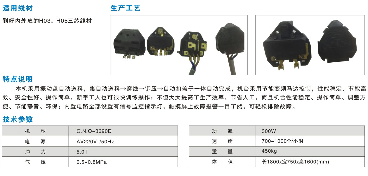 法国头,国标三插内架自动剥内皮铆压机